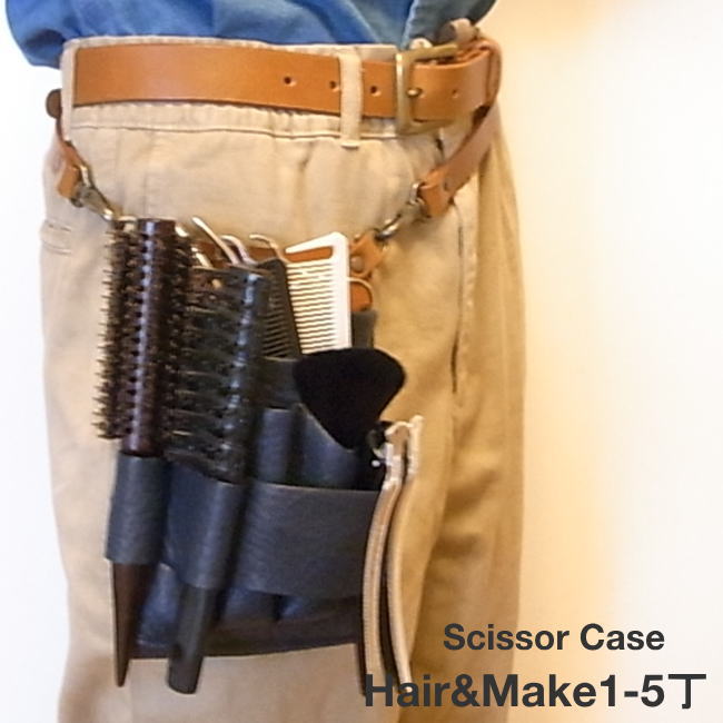 土台とベルトに厚めのしっかりした高級革を使い 前の部分に肌触りのいいソフトな高級革を使った 使うほどに馴染んでいく丈夫なシザーケースです。