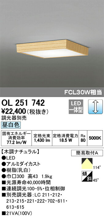 βオーデリック/ODELIC 小型シーリングライト 角型(木調)【OL251742】LED一体型 連続調光 昼白色 木調ナチュラル