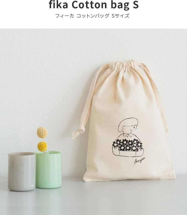 cotton bag S size fika [フィーカ] 沢山のお花を抱えた女の子のイラストが微笑ましい、コットンバッグ“ fika ” コットンバッグをラッピングに使って、プレゼントを送ってみませんか? プレゼントを受け取ったお相手もきっと喜んでくれるはず。