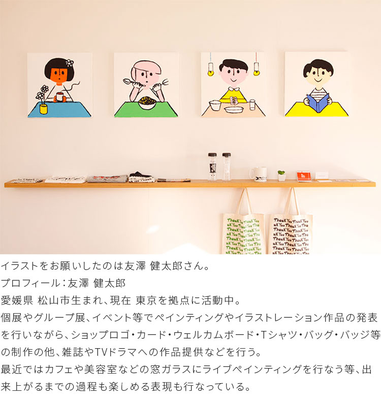 柔らかでほっとするイラストは、イラストレーターの友澤健太郎さんが描いたものです。