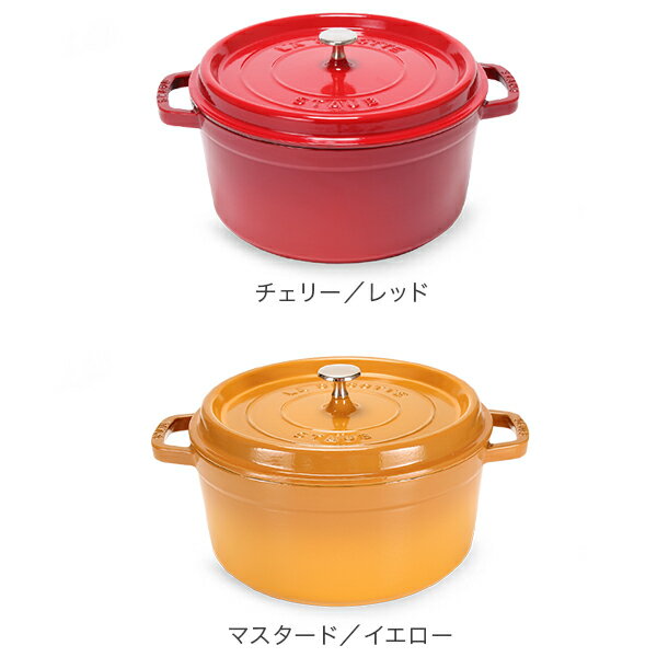 商品名ストウブ【Staub】ピコ・ココット ラウンド 26cmカラーブラック(1102625/40509-310-0)グラファイトグレー(1102618/40509-312-0)チェリー/レッド(1102606/40509-840-0)マスタード/イエロー(1102612)カンパーニュ(ホワイトトリュフ)<2019年新色>(11026107/40501-413-0)シャイニーブラック(4102601)サイズ<外寸>トップ幅:33cm(両サイドの取っ手含む)ボトム幅:24cm高さ:17cm(蓋のつまみ含む)<内寸>トップ:26cm深さ:11.5cm重量:5.4kg容量:5.2L仕様●直火、IH(100v、200v)、ハロゲンヒーター、シーズヒーター、オーブン、食器洗浄機 対応※電子レンジにはご使用いただけません。