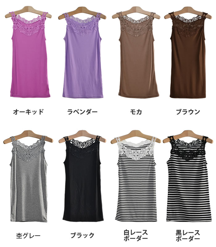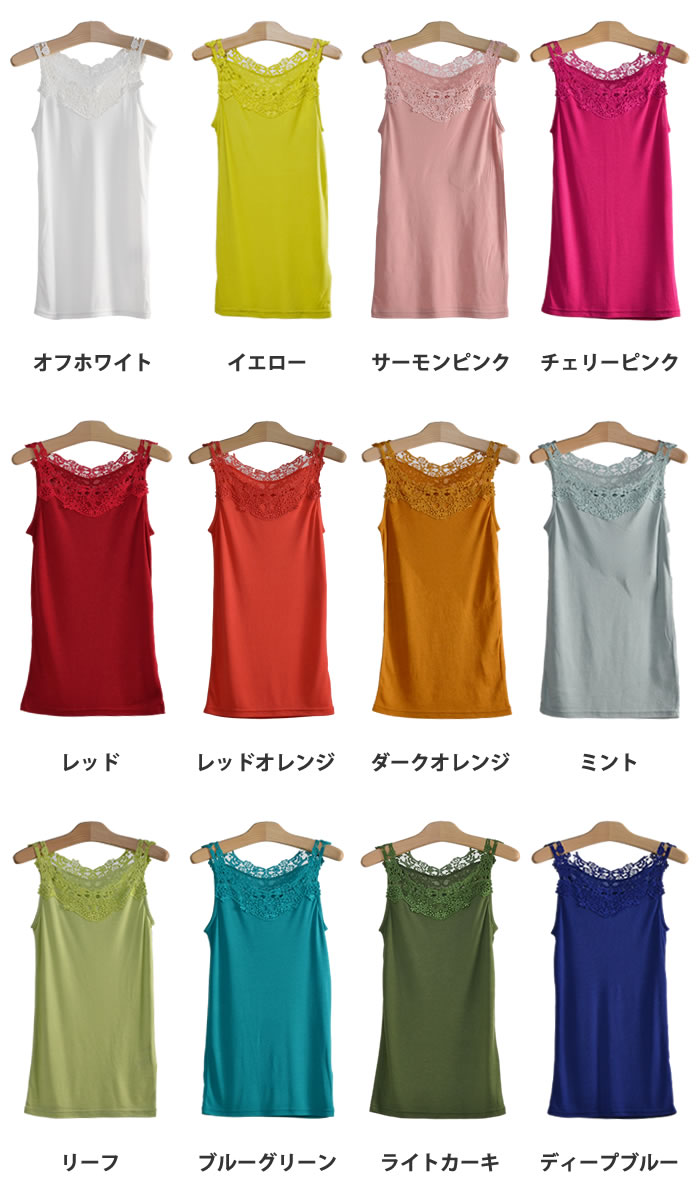レースの透け感が優雅で、しっかりと伸びのよい上質素材は着心地も◎ 豊富なカラー展開でコーデに合わせやすく、 チラ見せおしゃれコーデが楽しめる大人気インナーです。